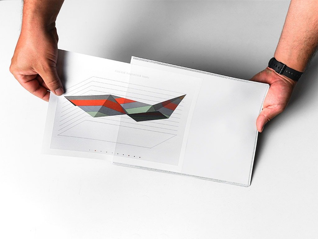 A klasszikus A4 formátumú mágneses tasak elülső része átlátszó PVC fóliával van ellátva a bemutatott dokumentumok egyszerű behelyezése érdekében. A tasak teljes hátoldala barna, 0,7 mm vastag, rugalmas mágneses fóliából áll, látható oldala pedig színes laminálással van ellátva. A mágneses tasakot fehér színben kínáljuk. Ezzel a változattal a rövidebb oldal irányában lehetséges a beillesztés. A mágneses tasak alkalmas üzenetek vizuális megjelenítésére „mágnestáblán” vagy más fém felületen. Vízszintes vagy függőleges helyzetben rögzíthető.