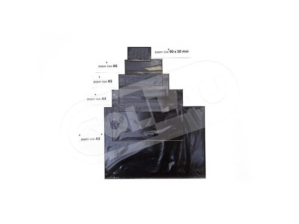 A klasszikus A5 formátumú mágneses tasak elülső része átlátszó PVC fóliával van ellátva a bemutatott dokumentumok egyszerű behelyezése érdekében. A tasak teljes hátoldala barna, rugalmas mágneses fóliából áll. Ezzel a változattal a rövidebb oldal irányában lehetséges a beillesztés. A mágneses tasak alkalmas üzenetek vizuális megjelenítésére „mágnestáblán” vagy más fém felületen. Vízszintes vagy függőleges helyzetben rögzíthető.