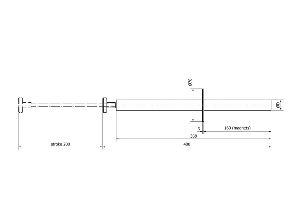 A mágneses rudat 25mm átmérőben és 400 mm teljes hosszban gyártjuk (az aktív mágneses rész hossza 160 mm).