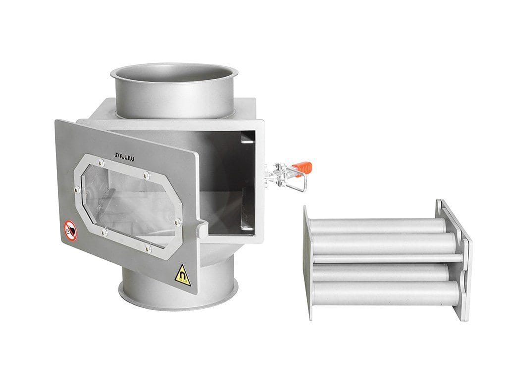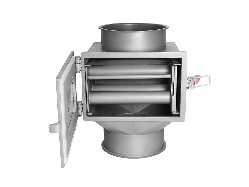 A mágneses szekrényes szeparátor lehetővé teszi a mágneses fémszennyeződések egyszerű és gyors elválasztását a tiszta terméktől és megvédi a gépeket illetve a megtisztított anyagot később feldolgozó berendezéseket a sérülésétől. A mágneses elválasztó alapja egy vagy két kihúzható rozsdamentes acél mágnesrács, amelyen keresztül a megtisztított szárazanyag átesik. A rácscsövek belsejében lévő neodímium mágnesek által generált nagyon erős mágneses tér megfogja a ferromágneses részecskéket a rácsok felületén. Az MSS-MC esetében klasszikus kivitelről van szó, ahol a mágneses rácsok az ajtóval keresztben vannak elhelyezve. Az átlátszó ellenőrző ablaknak köszönhetően folyamatosan ellenőrizhető az anyagáramlás és a csövek szennyezettségi állapota. A tisztítás során a rácsok kihúzhatók a szeparátorból, így könnyen és gyorsan tisztíthatók. A mágneses magok kézi kihúzása után a rozsdamentes acélcsövekről azaz a rácscsövek felületéről a ferromágneses szennyeződések maguktól lehullanak.