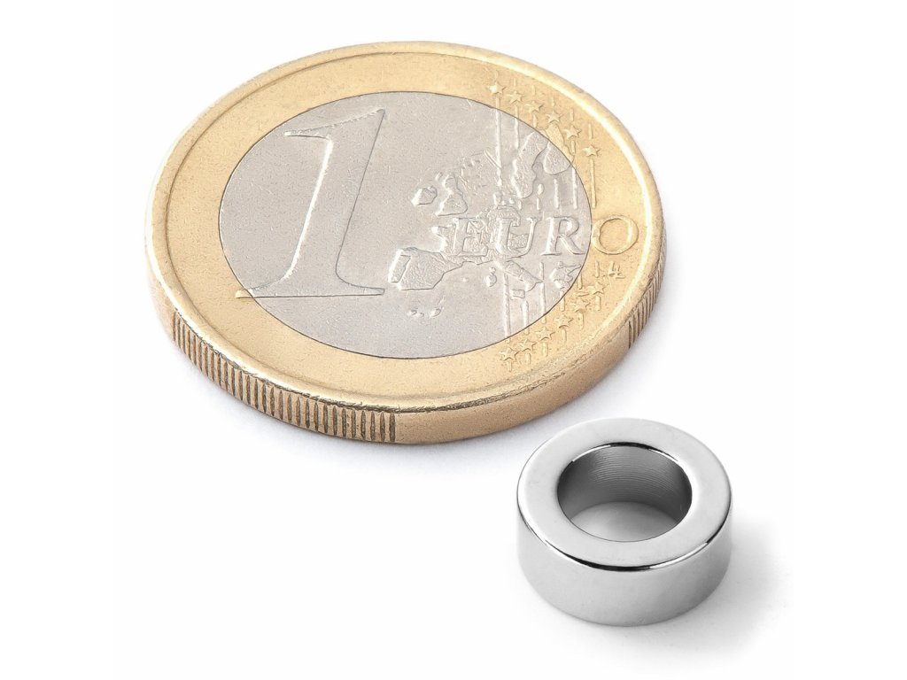 Neodímium gyűrűs mágnes D 10/6 mm, H 4 mm, N38, nikkelezett