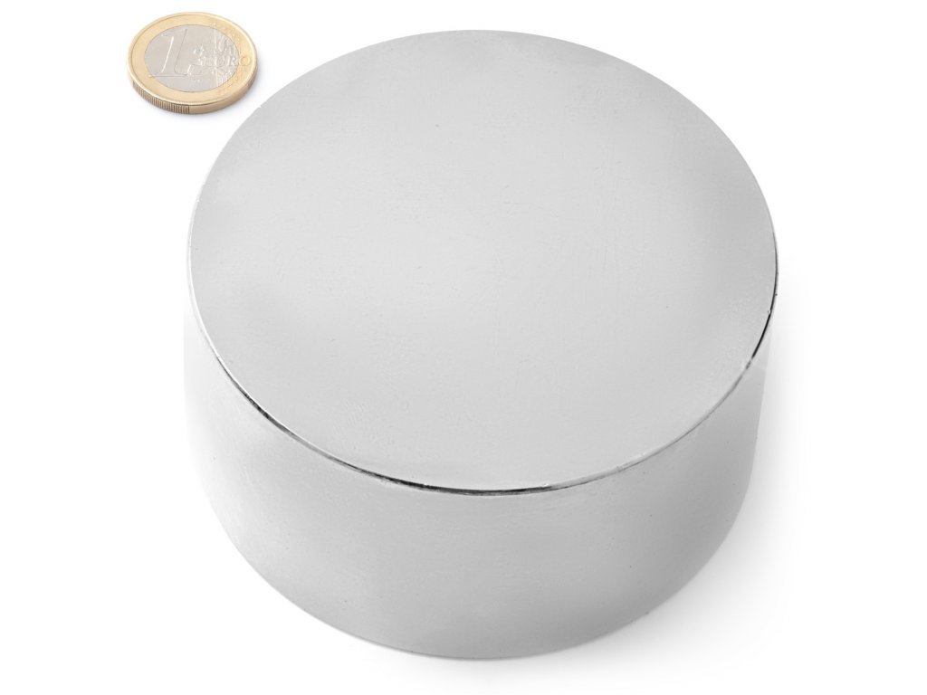 Neodímium mágnes henger D 100x50 mm, Neodímium, N40, nikkelezett