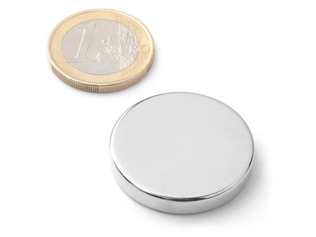 Neodímium mágnes henger D 30x5 mm, Neodímium, N38, nikkelezett