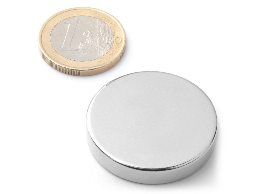 Neodímium mágnes henger D 33x6 mm, Neodímium, N38, nikkelezett