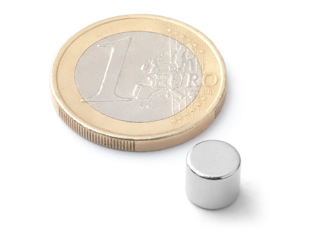 Neodímium mágnes henger D 7x6 mm, Neodímium, N38, nikkelezett